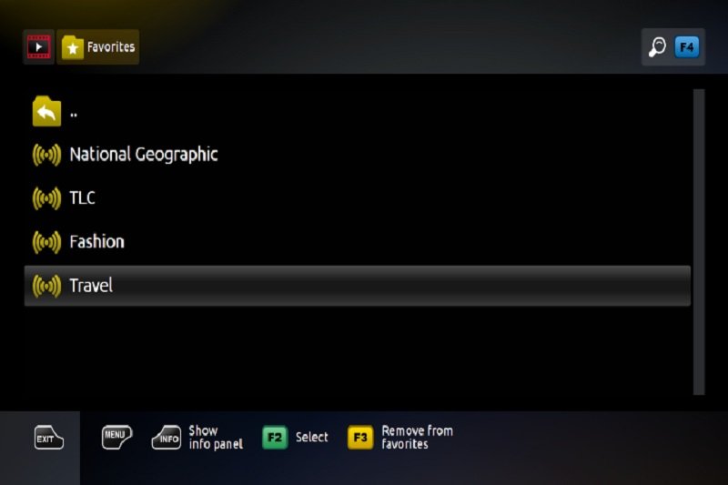 - In the event that you press the OK button on the remote control, the channels that you have chosen will be added to the Favourites section of your device in a permanent manner.